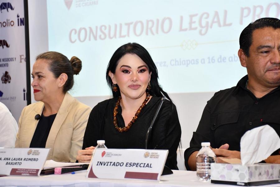 Por invitación del Dr. Gabriel Enrique Bravo del Carpio, rector de la Facultad Libre de Derecho de Chiapas (FLDCH), la Mtra. Ana Laura Romero Basurto asistió a la inauguración de la Consultoría Legal de esta institución, un espacio académico con enfoque social que busca fortalecer la formación práctica de las y los estudiantes, así como brindar orientación jurídica gratuita a la población.