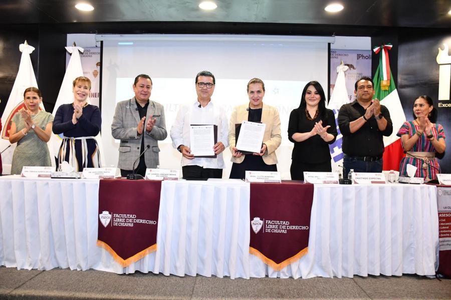 Por invitación del Dr. Gabriel Enrique Bravo del Carpio, rector de la Facultad Libre de Derecho de Chiapas (FLDCH), la Mtra. Ana Laura Romero Basurto asistió a la inauguración de la Consultoría Legal de esta institución, un espacio académico con enfoque social que busca fortalecer la formación práctica de las y los estudiantes, así como brindar orientación jurídica gratuita a la población.